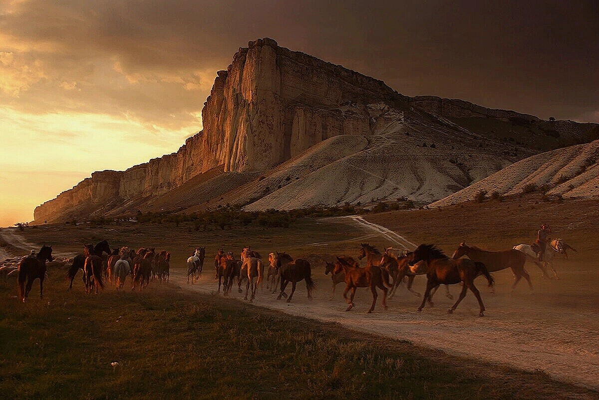 Поднимемся на Белую Скалу на закат сделаем массу прекрасных фотографий и увидим перегон лошадей.